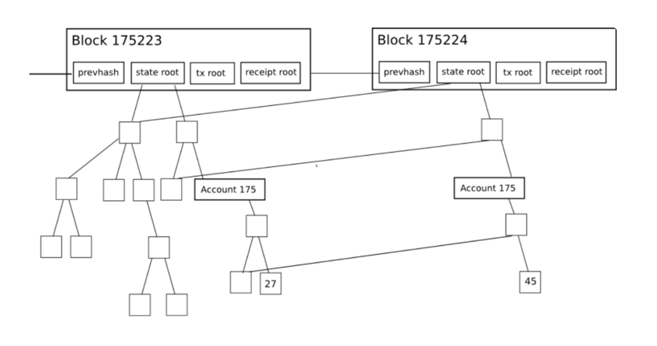 Block 175223 과 Block 175224 2개의 블록이 존재하며, 두 블록은 같은 머클 트리를 공유한다.