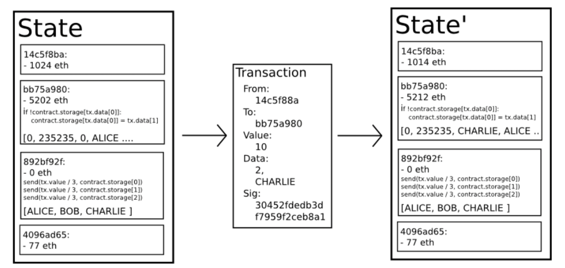 비트코인의 경우 상태를 업데이트 하지 않고 거래내역을 저장하는 구조.. 이더리움은 상태전이의 특징을 갖고 거래내역을 업데이트하지만 , 모든 거래내역을 업데이트하는 것은 아니고, 기존 거래 내역을 저장하고 있다가 블록에 대한 거래에 이상이 없다고 판단되면 상태전이가 진행됨.