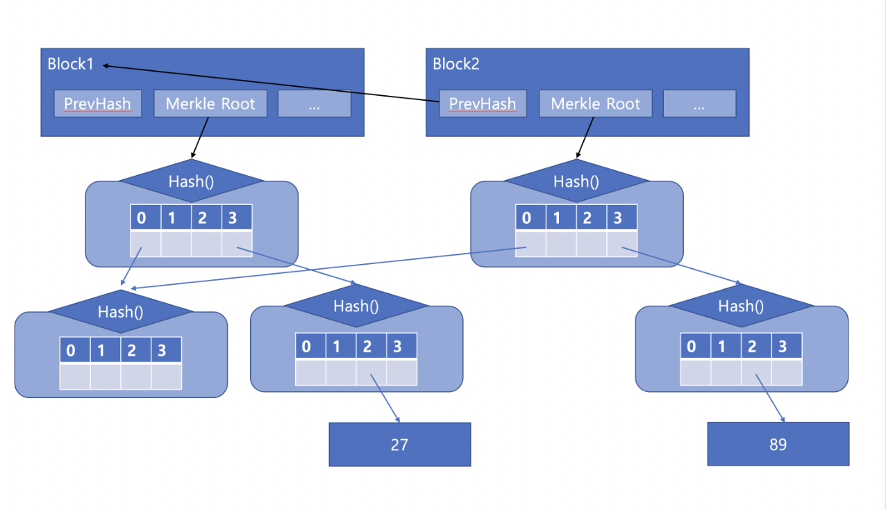 비트코인에서 사용되는 이진 머클 트리에 대해 알아보자.