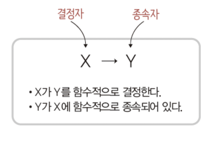 함수 종속 : "X가 Y를 함수적으로 결정한다"